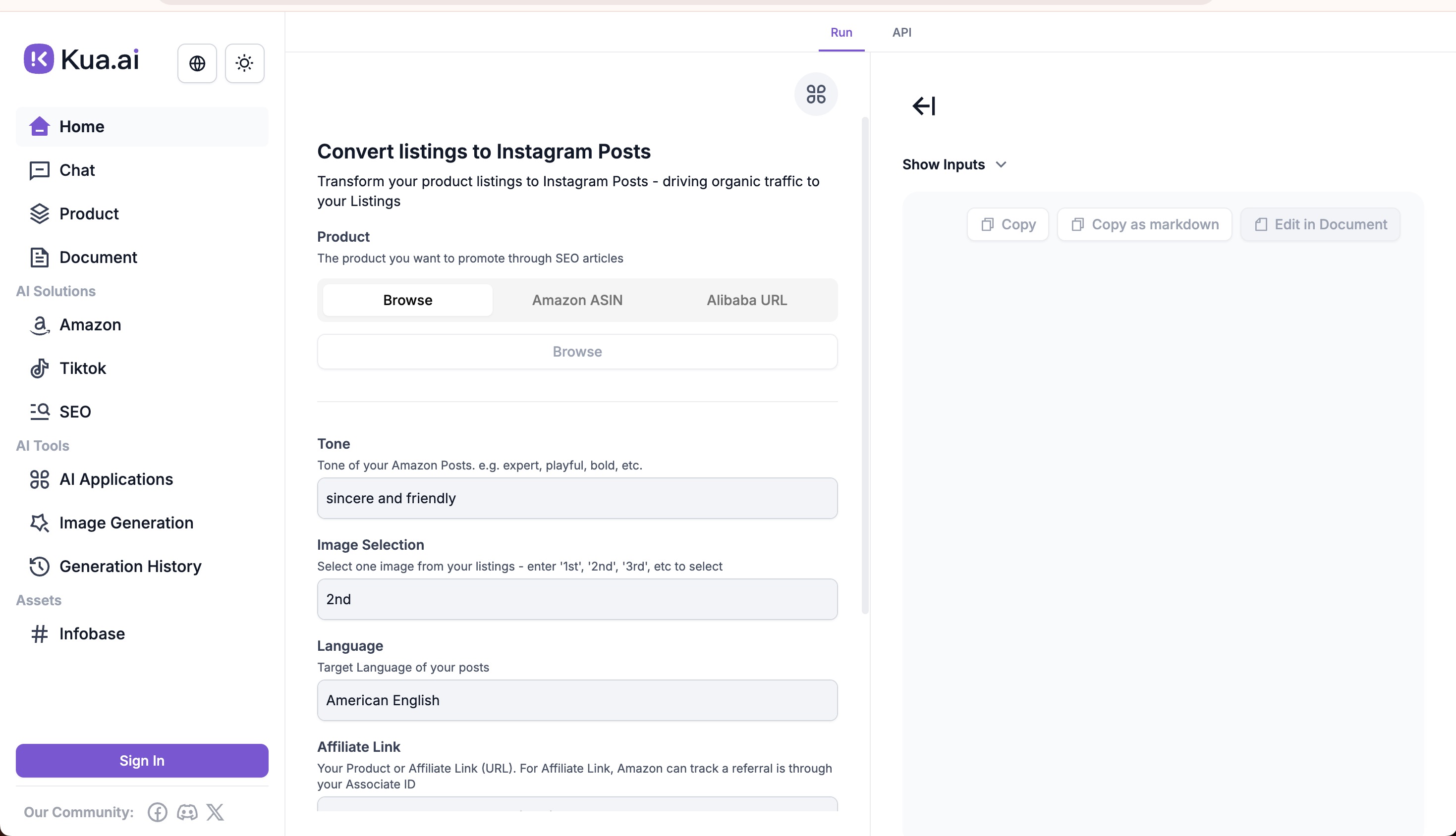 • Equip Your Partners: Use Kua.ai to generate copy and visual ideas that make your affiliates' jobs easier.
